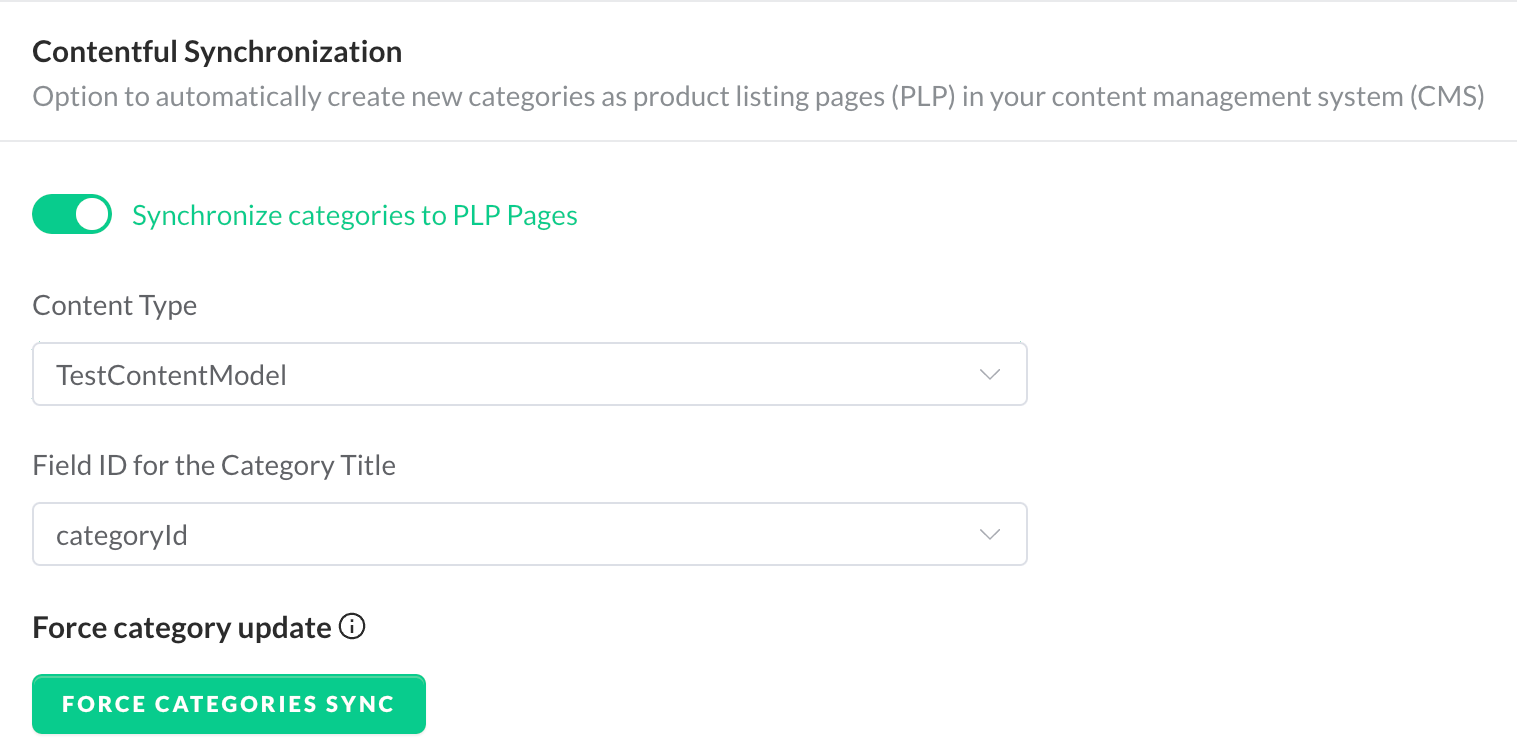 - Optionally: Force an update of all categories e.g. for initially importing all categories as PLPs in Contentful.