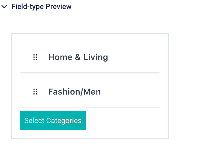 - selectOnly: to define whether you want to select only products or categories