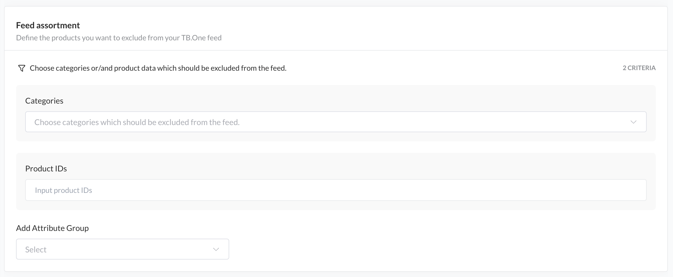 The Add-on includes all the products present in the selected shop countries as the feed assortment. However, exclude rules allow you to define criteria for removing specific data from your feed. In this section, you'll learn how to configure these rules.