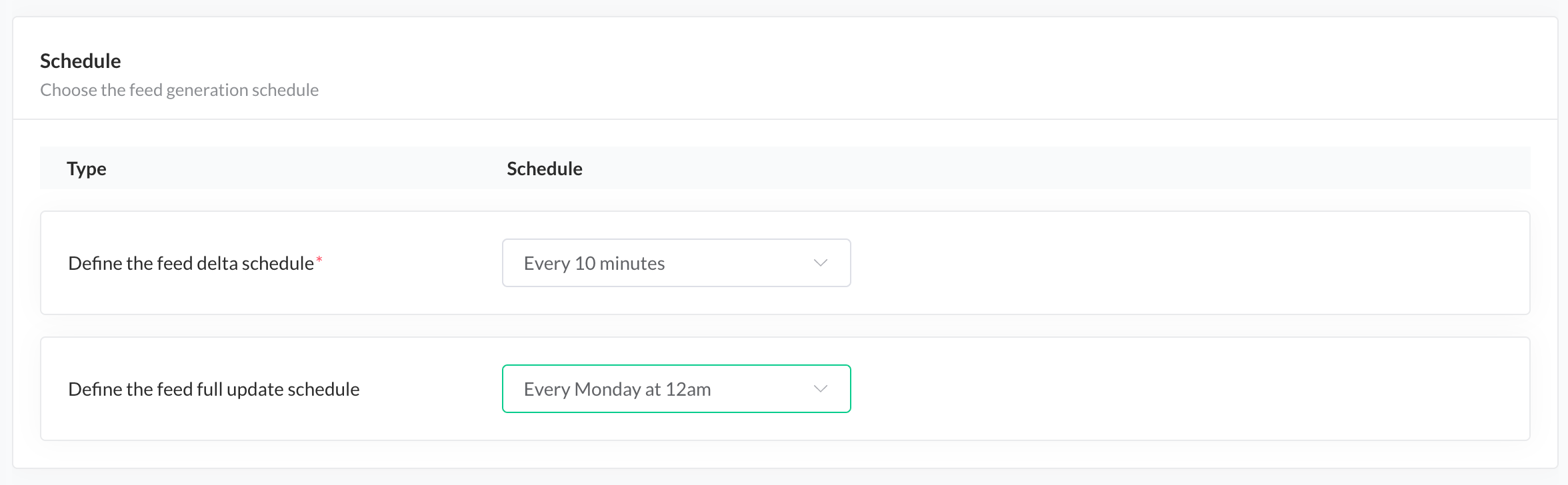 When setting up the scheduler with the Add-on, you can choose between two main types: Full Feeds and Delta Feeds. Understanding the difference is key to optimizing data transfer and ensuring efficiency.