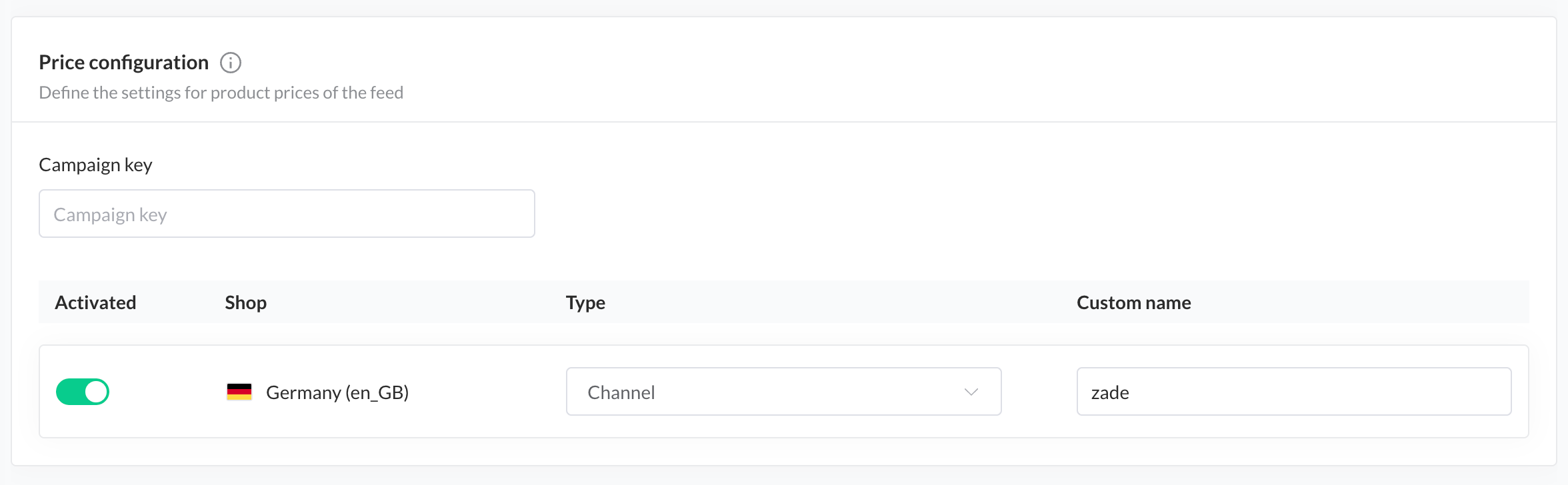 - Under Custom name, enter the import key of the price list you want to assign to it.