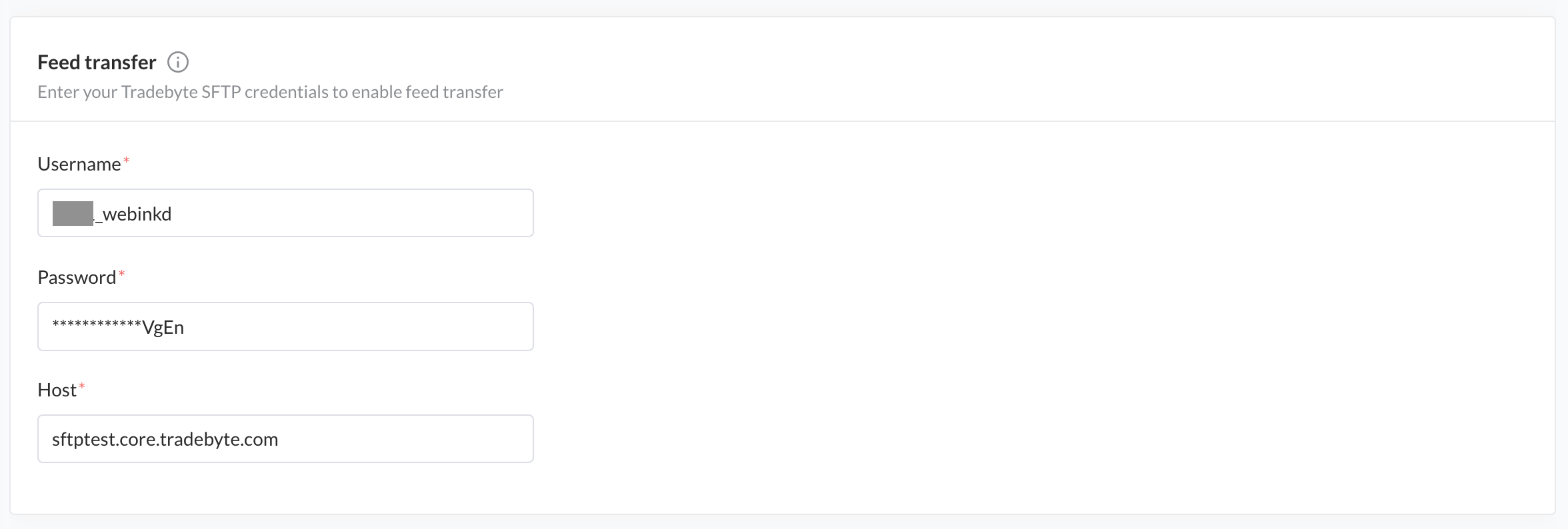 - Enter the Host, Username and Password to access the Tradebyte SFTP