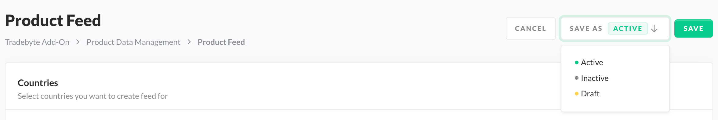 Before your feed will run you have to activate the feed. The Tradebyte Add-on features the following states of a feed.