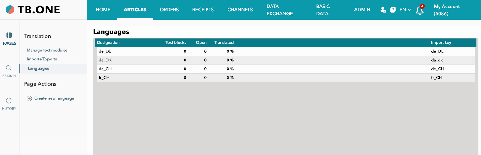 If a channel is bilingual in TB.One (for example, ABOUT YOU BE (FR + NL) or Zalando CH-FR, CH-DE etc), ensure that both languages are activated in the TB.One Platform.