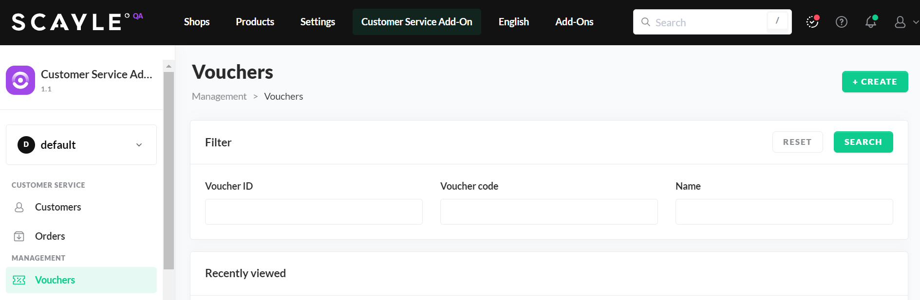- Go to SCAYLE Panel → Add-ons → Customer Service Add-on → Management → Vouchers