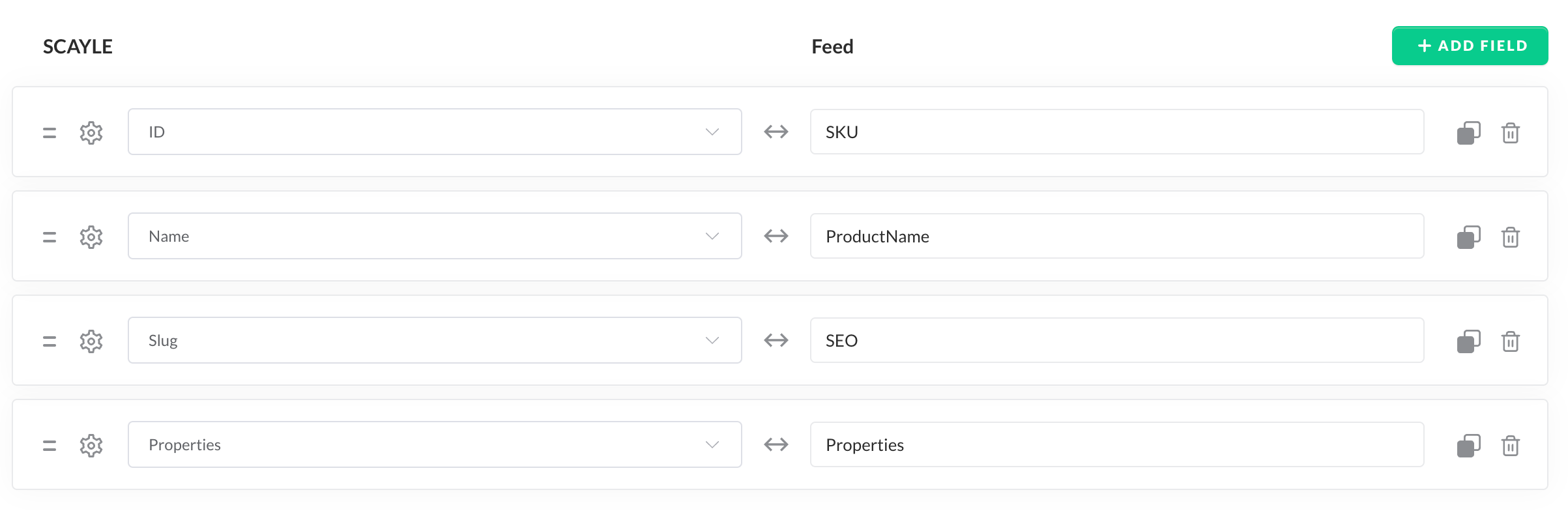 Feed field mapping table