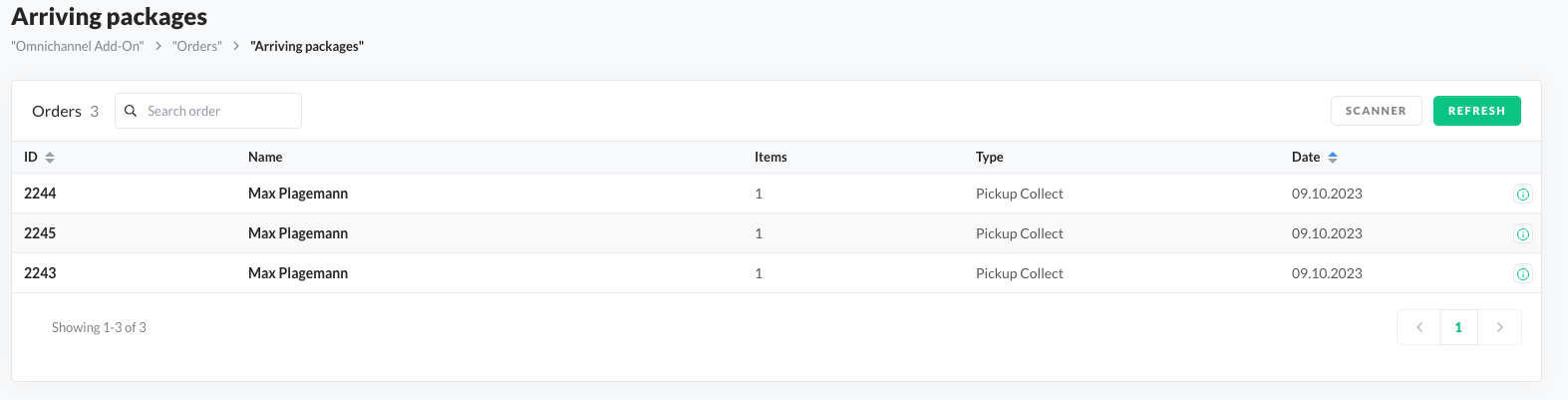 This section shows you all Click & Collect orders, which are ready and prepared for customer pick-up.