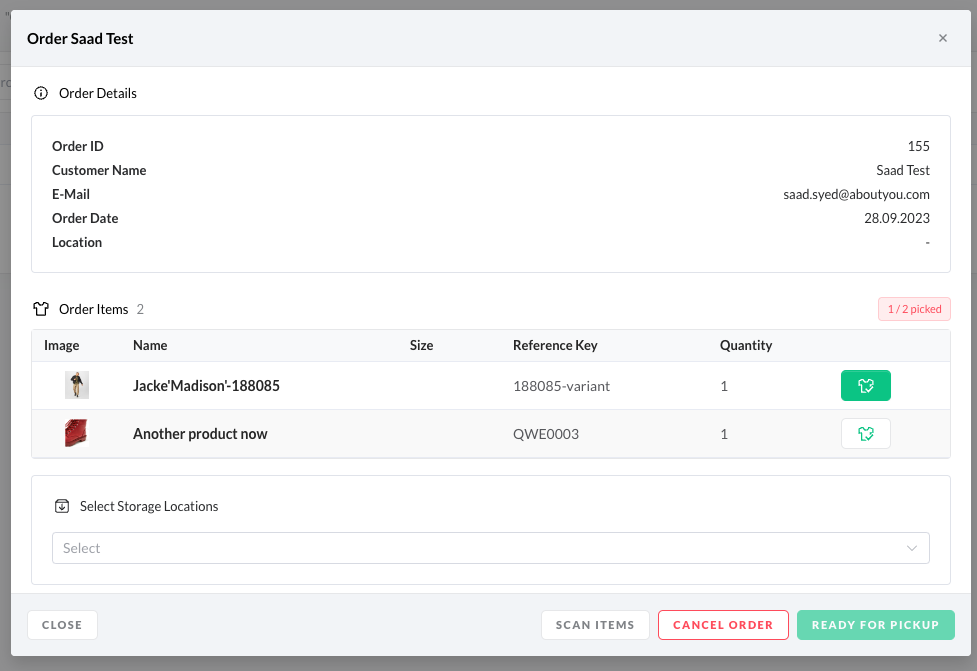 By clicking this button, you are triggering the customer notification and move the order to the “Ready for Pickup” section.