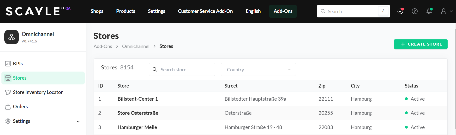 Store List Page in the SCAYLE Panel