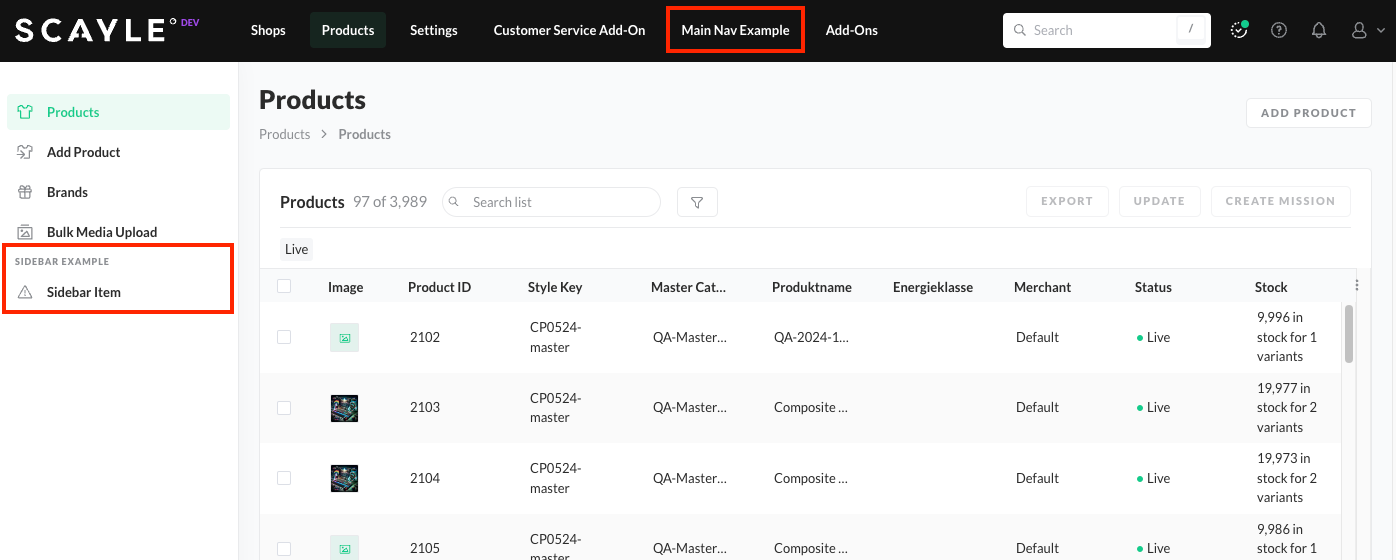 Adding Add-on to the SCAYLE Panel main navigation