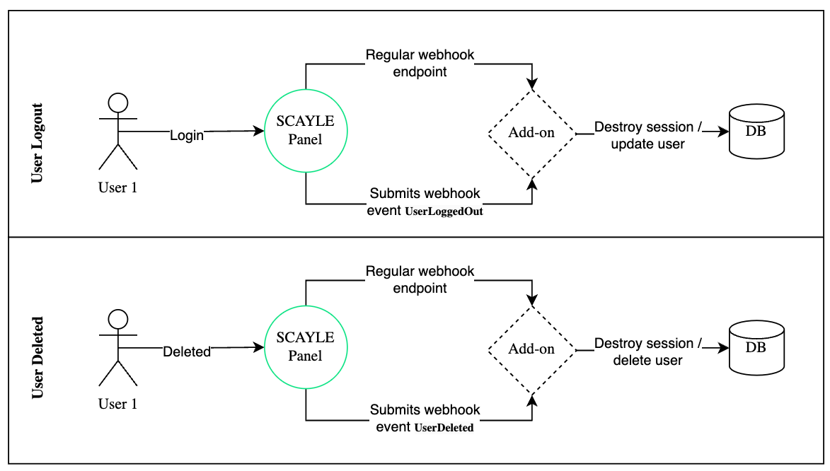 The goal is, to initiate your own auth token for all communication between your Add-on frontend and backend. To achieve that, your Add-on frontend sends the SCAYLE Panel Authorization Token to your Add-on backend. To confirm the authenticity of that provided SCAYLE Panel Authorization Token, your Add-on backend validates the Token against the SCAYLE Add-on API, and receives confirmation whether the Token is valid or not. The SCAYLE Add-on API response also includes up-to-date information about the users' permissions.