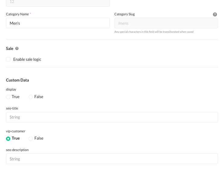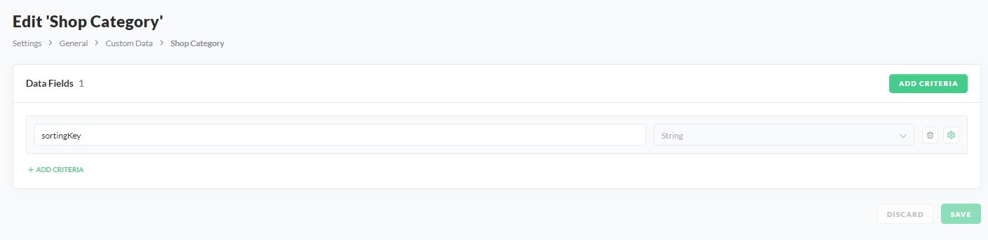 - Add Custom Data Field: Define a custom data field on Shop Category level.