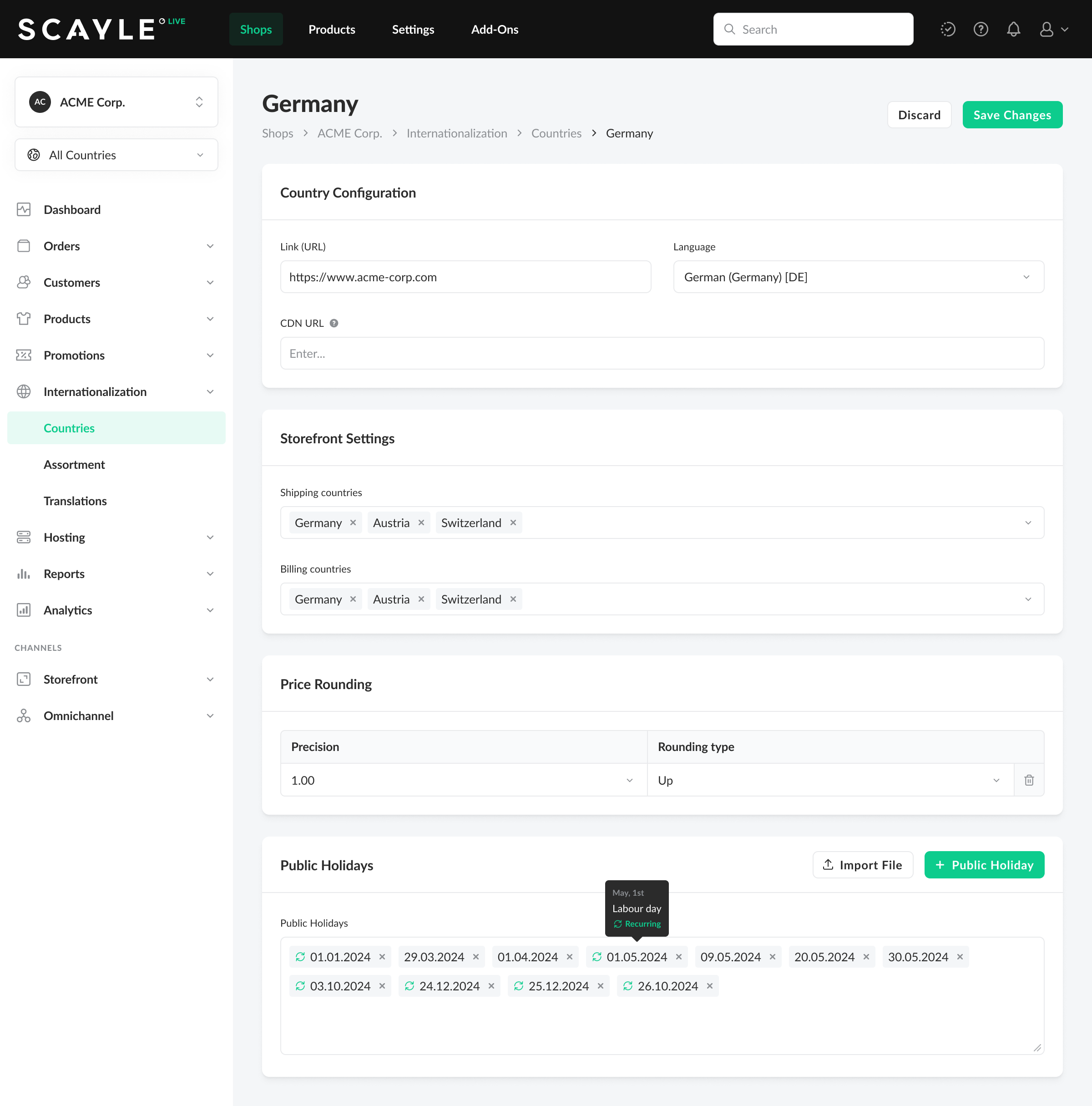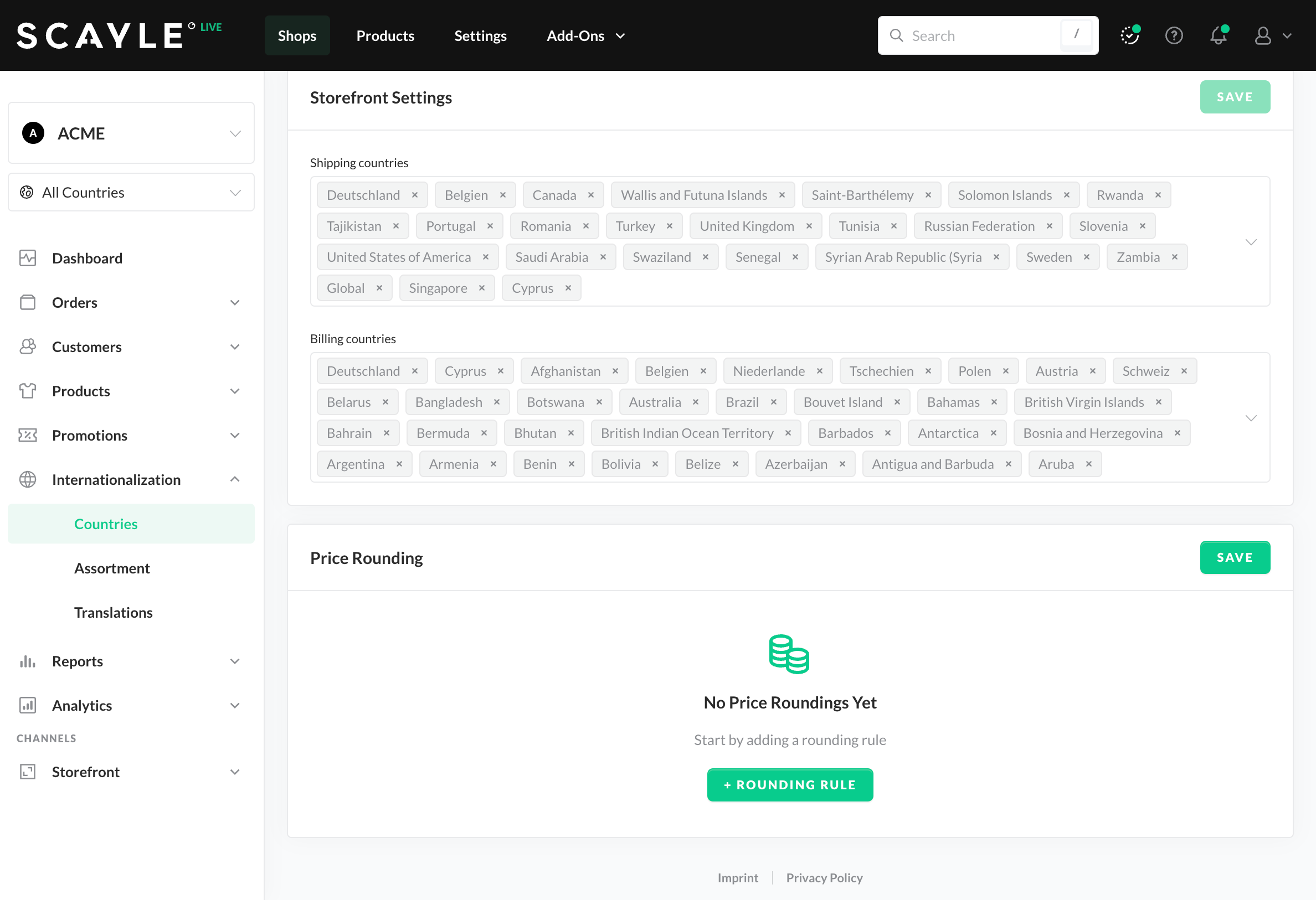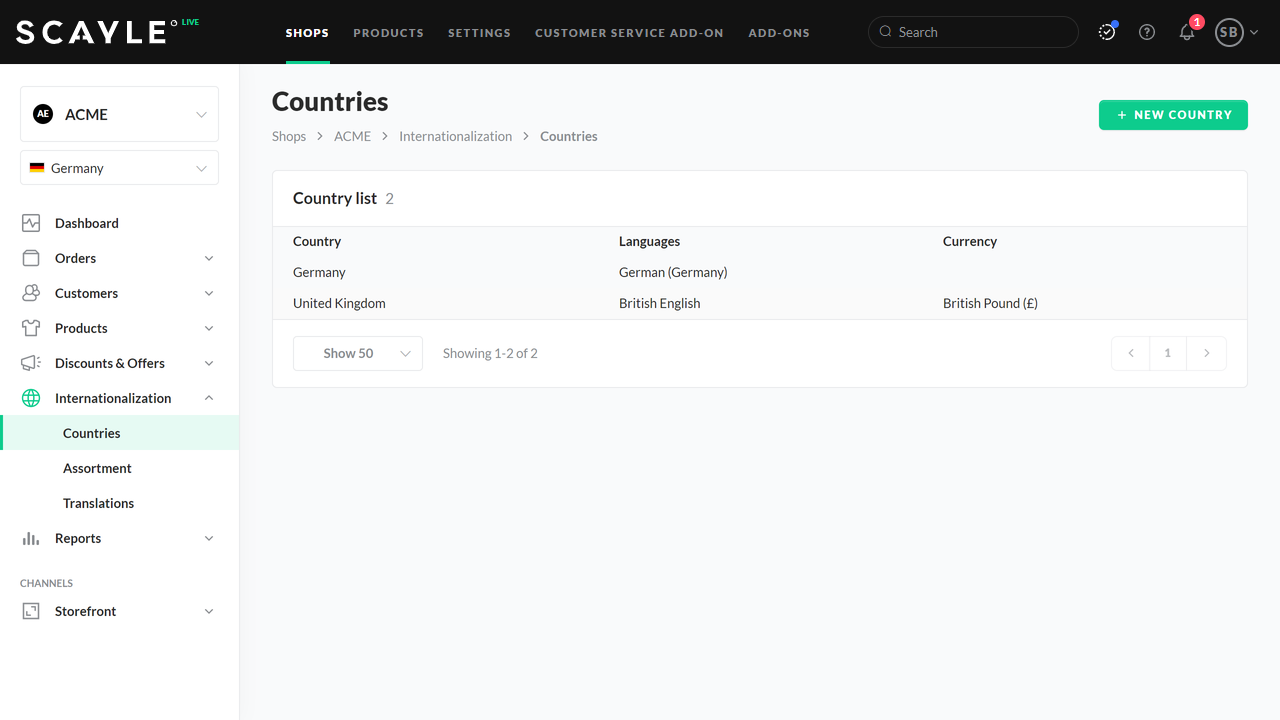 - Navigate to Shops ➜ Internationalization ➜ Countries and click on a Country.
