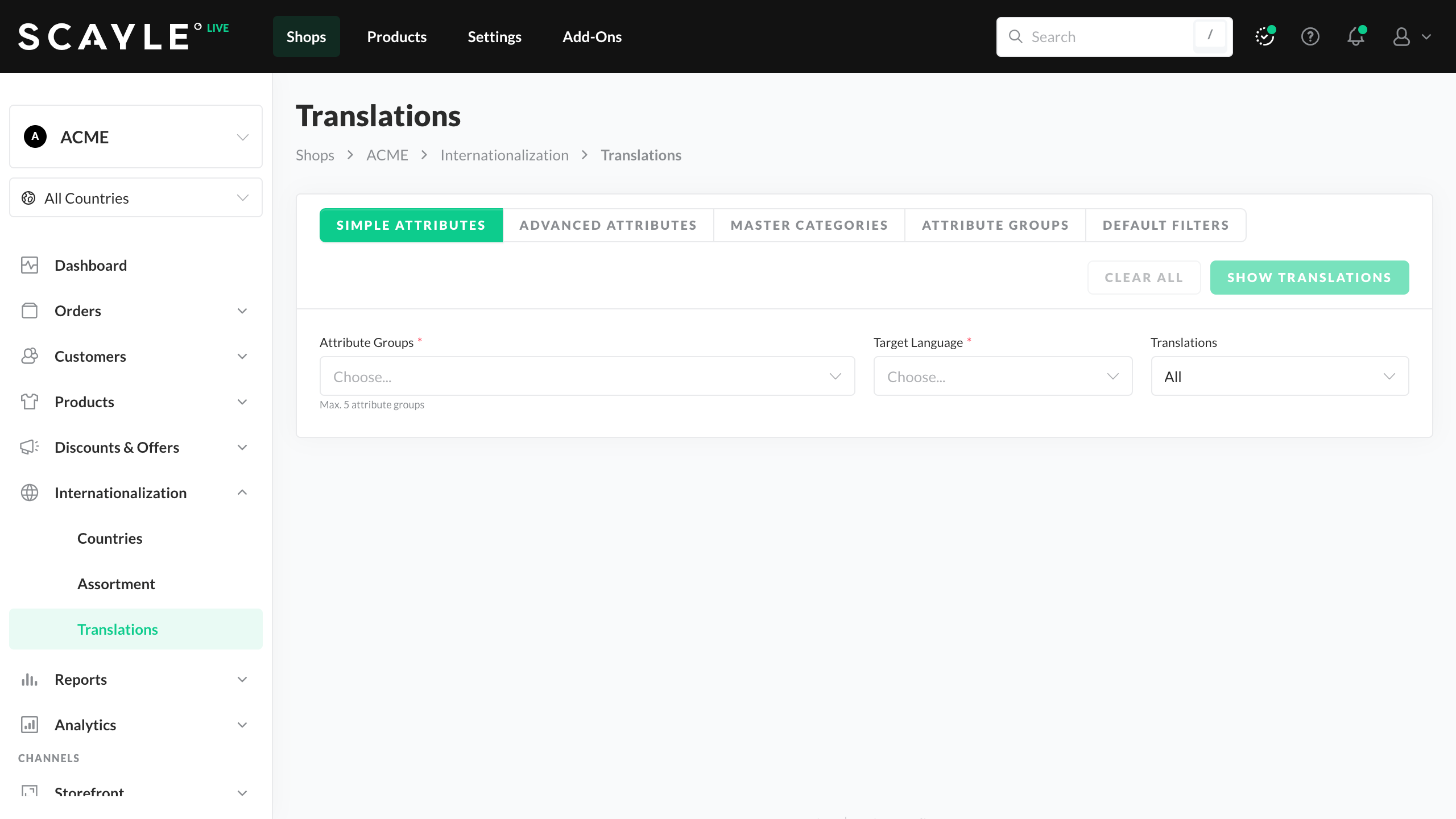 You can upload translations to the SCAYLE Panel from the import area. For details about importing translations, see Imports & Exports.