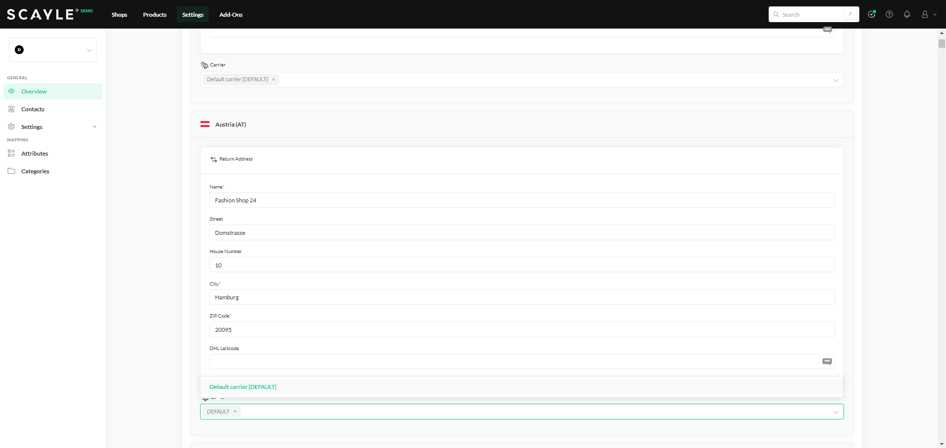 You can do this in the SCAYLE Panel under Settings ➜ General ➜ Configuration ➜ Carriers.