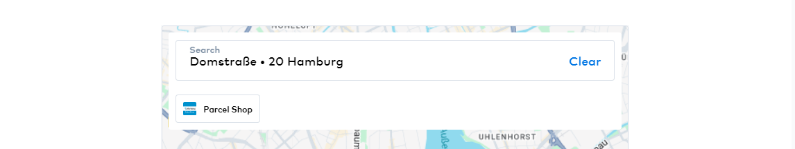 When a customer searches for a Collection Point using a given address, the Checkout Webcomponent will display the available Types within the Collection Point component based on the specified key, such as "Parcel Shop." The exact name of each Type is determined by the corresponding translation key.