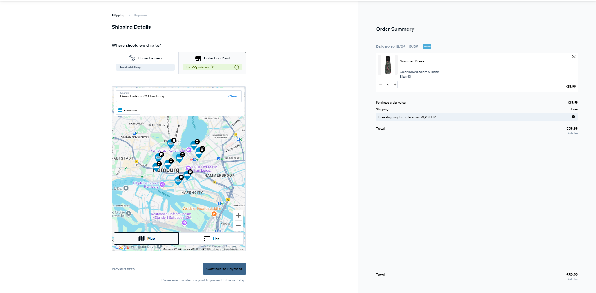 | Default view | map | Collection Point options can be selected from a map |