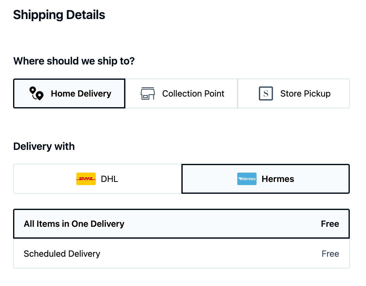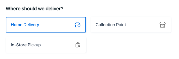 | Home Delivery | By default, the Delivery Option Selection component "Home Delivery" is autoselected | ![]() |