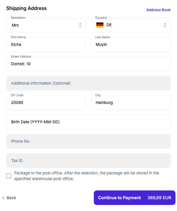If the user does not select the checkbox the package gets delivered to the shipping address set in the form.