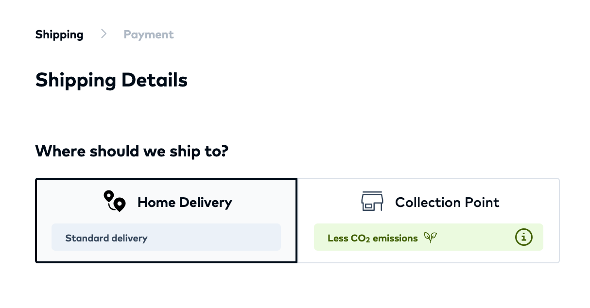 Example for HTML Slots: Highlighting Collection Points as the more sustainable Delivery Option