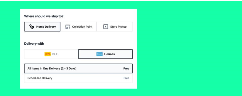 Each Shipping Option is linked to an individual Carrier. These options are not limited to Home Delivery but can also be applied to Collection Points like in-store pickups.