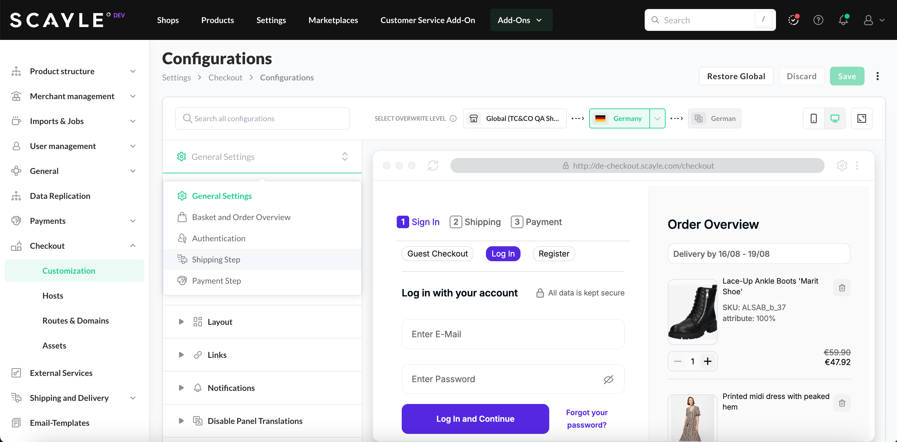 SCAYLE’s checkout offers exceptional flexibility, allowing extensive customization across various components to meet specific business needs.