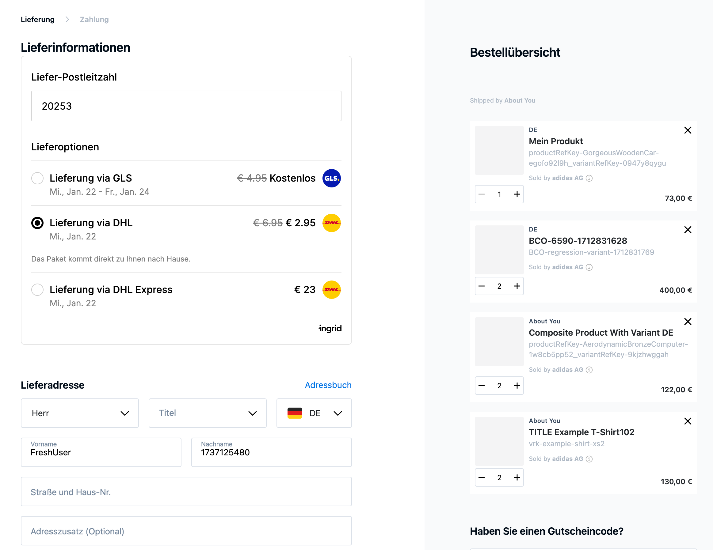 When the above configuration option is enabled and the setup is complete on the backend and on Ingrid itself, the SCAYLE checkout will display their widget instead of our delivery option selection.