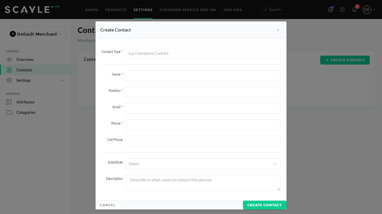 You can also manage contacts on the merchant details page. Add a new contact as follows: