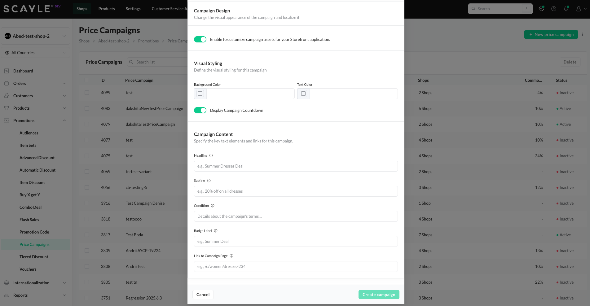 - Select the Shop where you want to create your promotion and go to Promotions ➜ Price Campaigns