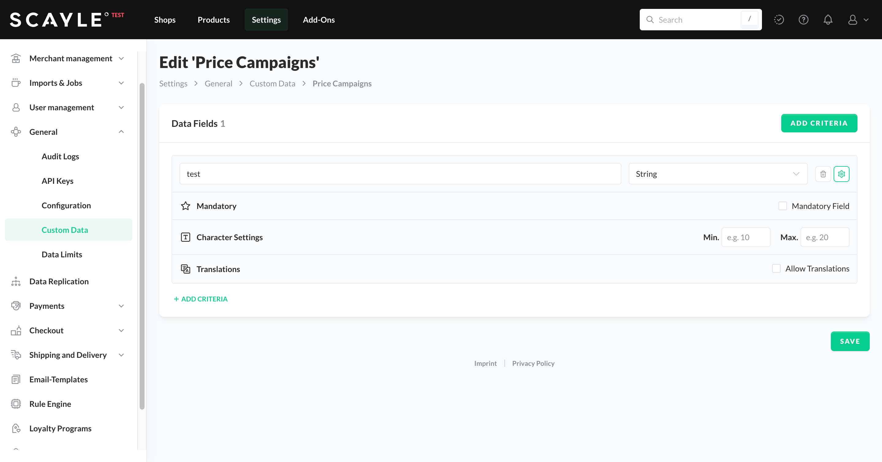 First, you need to configure custom data in the SCAYLE Panel's Settings area.
