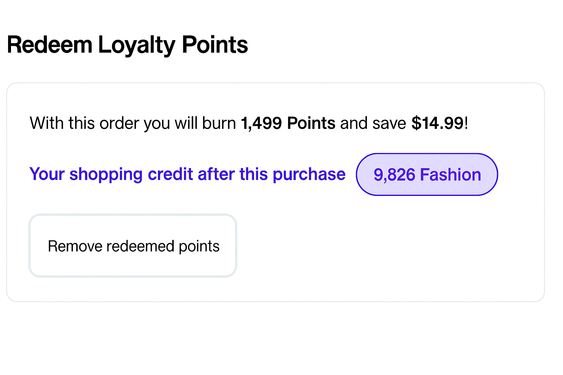 After validation, the card balance will be checked. Based on the response, customers may use points to fully or partially pay for their order, depending on your loyalty provider’s logic. Users have the option to choose how many loyalty points they want to redeem during checkout.