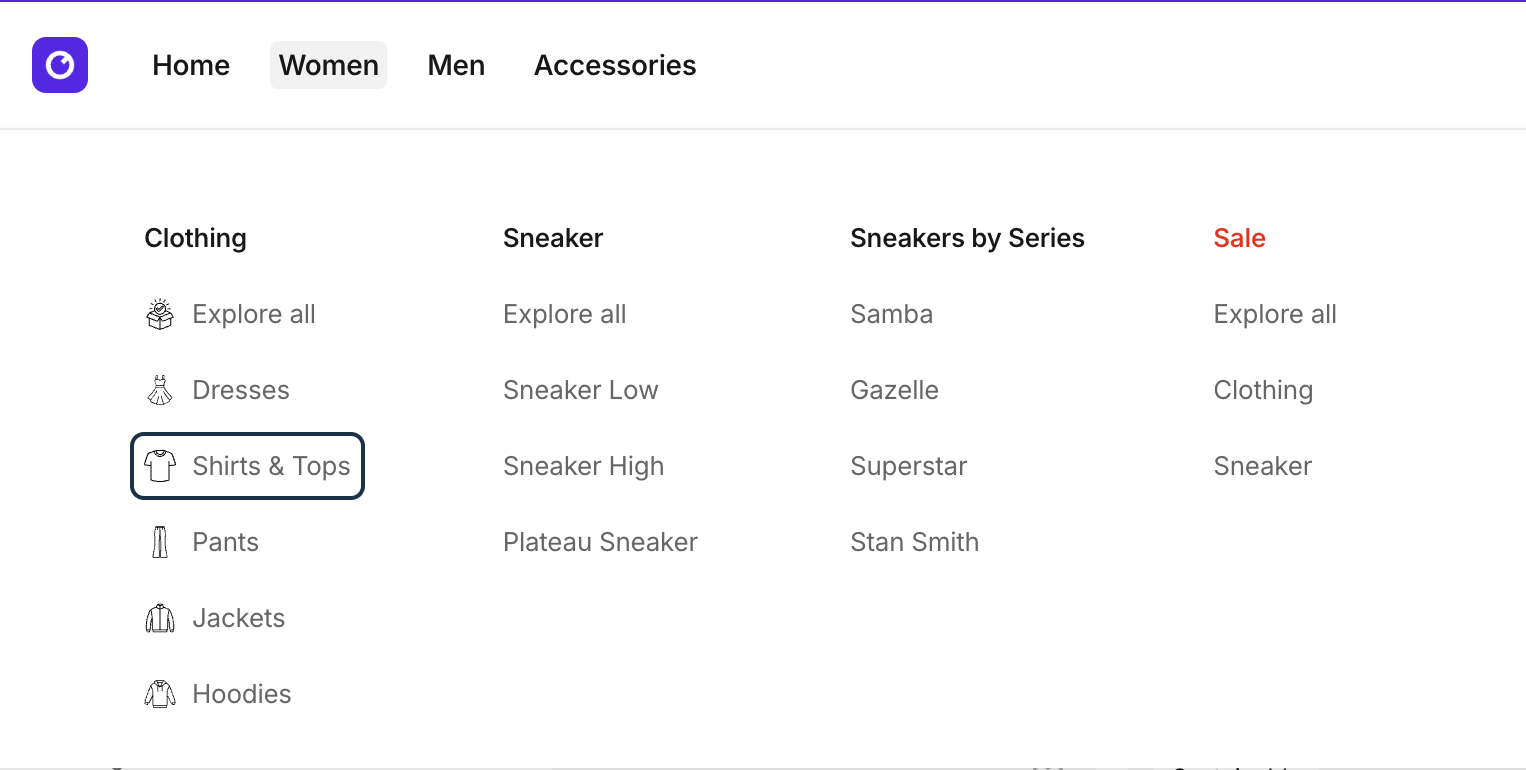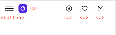 <a>tags navigate users to new pages (e.g., account, wishlist, and basket icons in the mobile navigation).<button>tags trigger actions (e.g., hamburger menu).