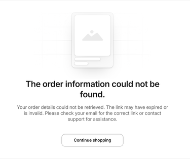 If an order cannot be retrieved due to an expired or invalid token, users will see a dedicated error state. This ensures a clear and user-friendly experience, guiding them toward the next steps.