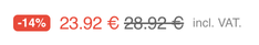 2. Final price: The final price, derived from the withTax property, will be displayed next. In this example, the final price is 23.92 €.