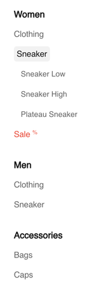 - Desktop View: By default, the category tree is displayed as a side navigation panel, showing root categories and their immediate children. Selecting a child category will reveal its own children below.