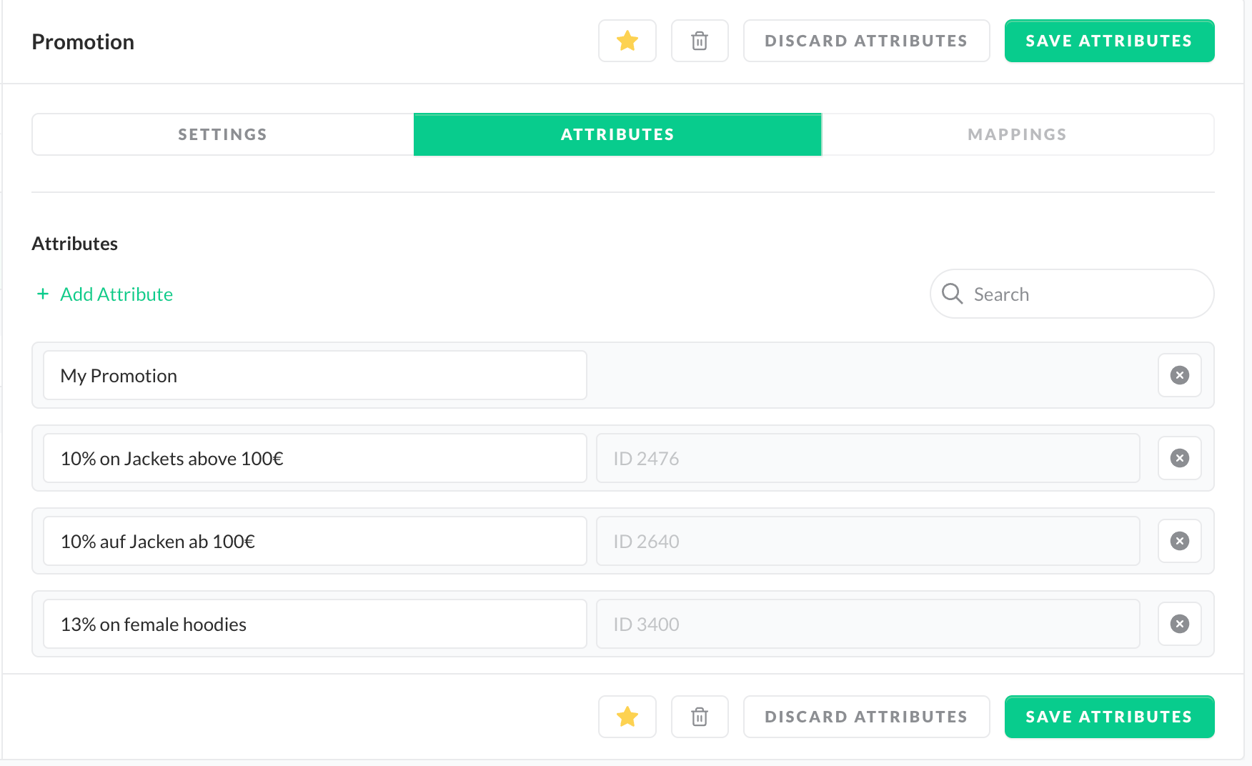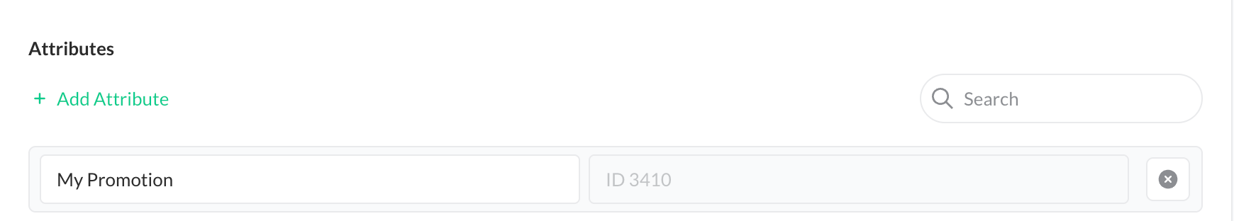 - Within this group, go to the Attributes tab and add a new attribute representing your promotion.