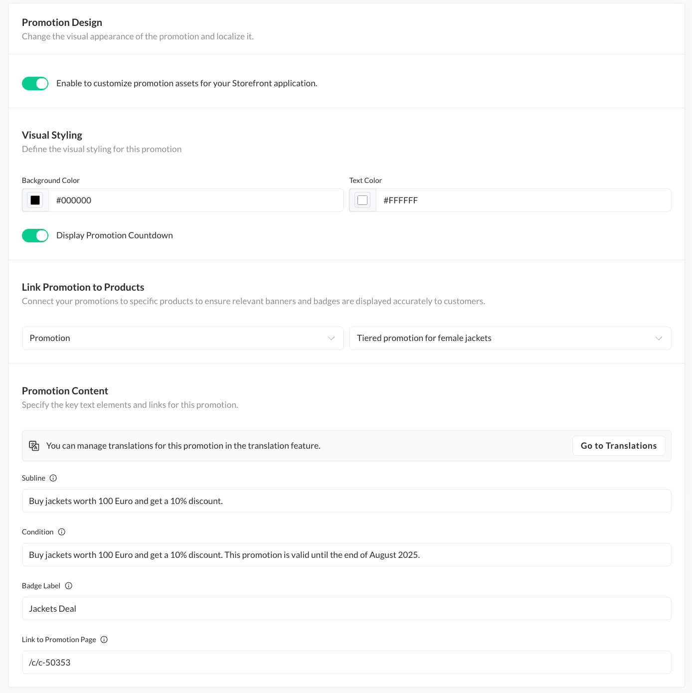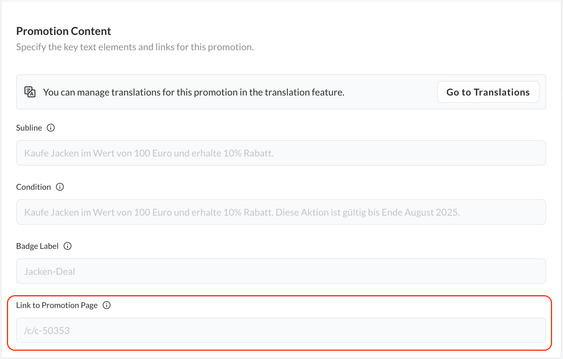 - If the promotion is set for multiple countries, proceed to the "Translations" page to translate content.