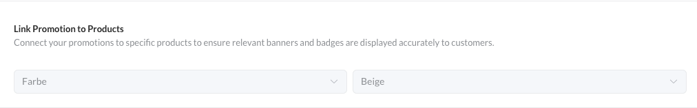 - Select this attribute from the dropdown to add it to your promotion configuration under Link Promotion to Products.