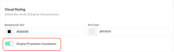 - SCAYLE Panel Field: "Display Countdown" toggle (under Promotion/Campaign Design).