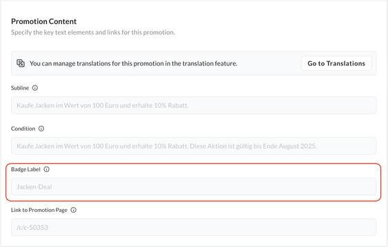 If a deal (promotion or campaign) is set for multiple countries, a translation box will appear above the translatable fields (e.g., subline, conditions, link for all deals, and headline for campaigns) in the SCAYLE Panel.