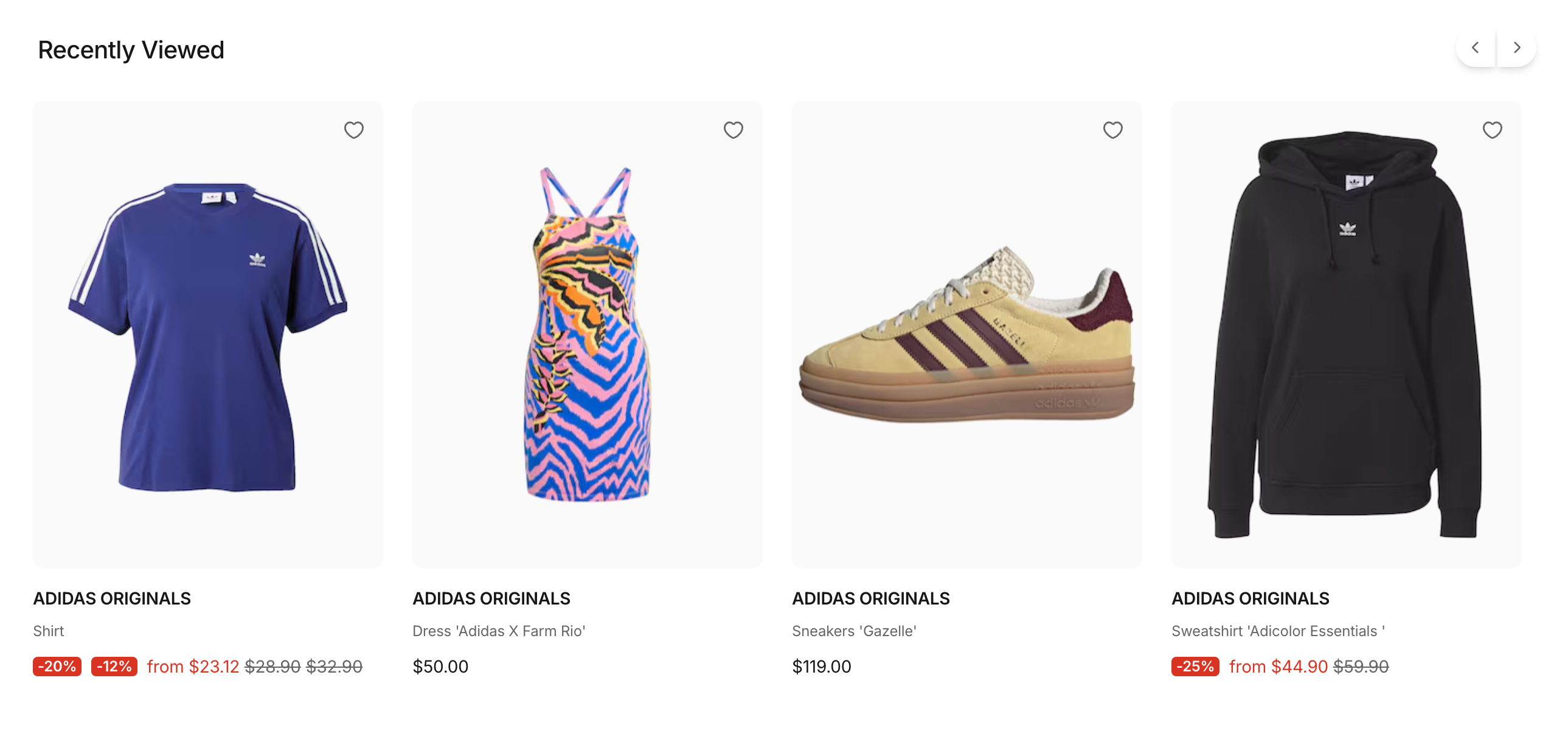 - Recently Viewed Products: Enabling easy re-engagement with previously viewed items to reduce friction in the buying journey.
