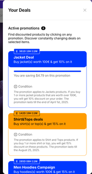 - Promotions: Provides users with a centralized view of all active promotions, helping them easily discover and take advantage of ongoing savings.