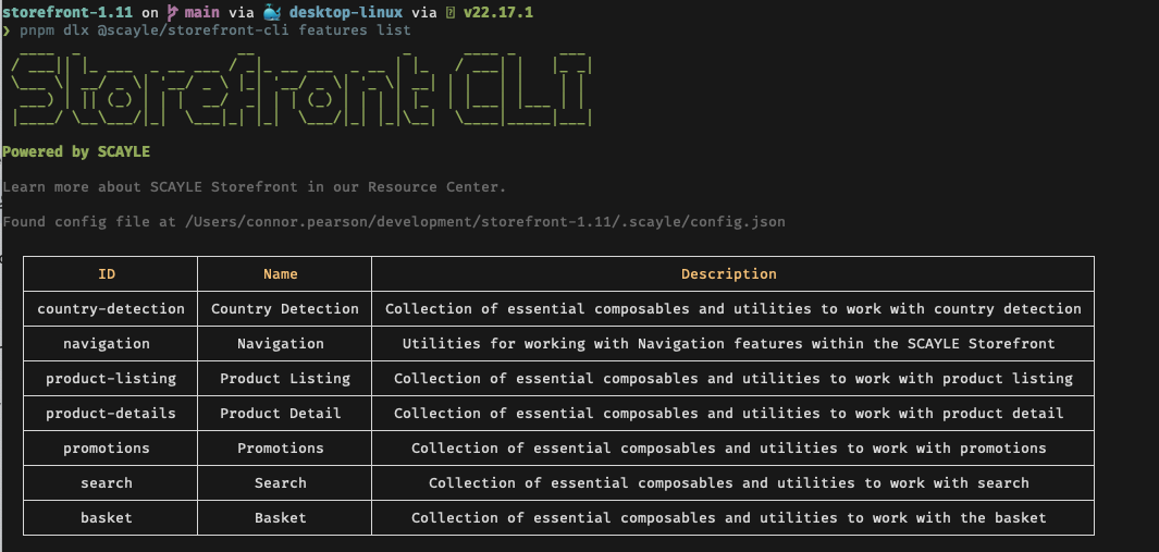 Lists all available feature packages that you can add to your project using the features add command.