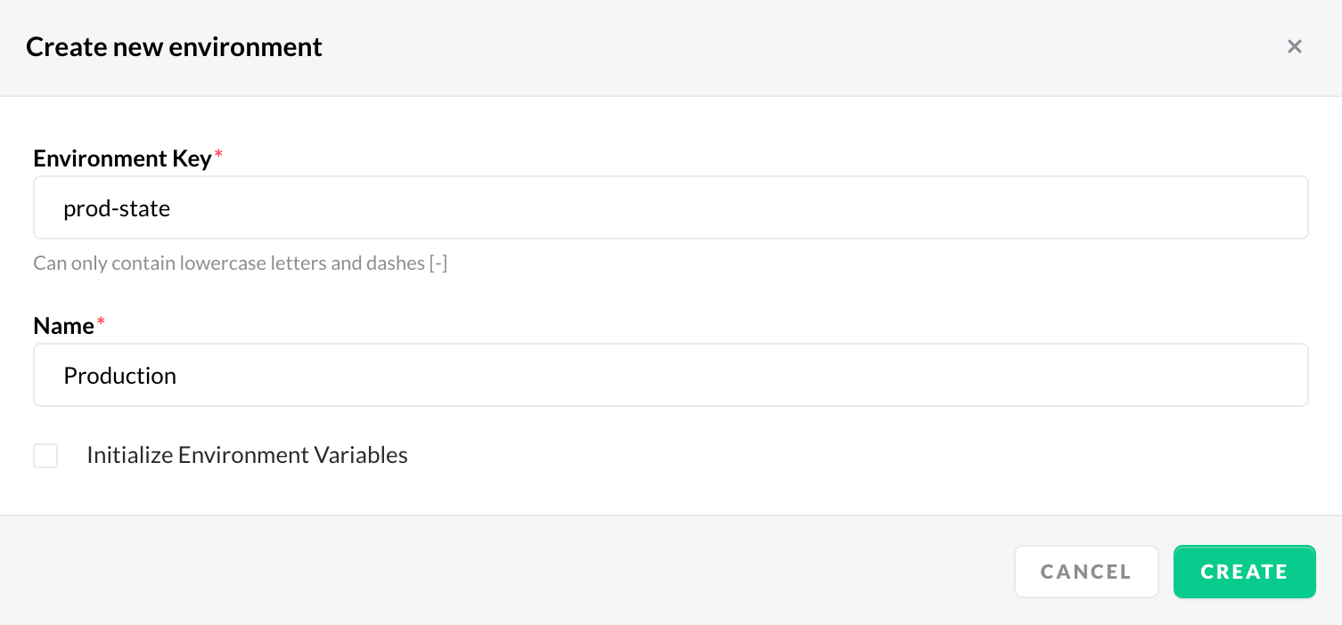 - Optionally, checkmark Initialize Environment Variables in case you want your environment to be prepopulated with the required environment variables to run your Storefront Application out-of-the-box.