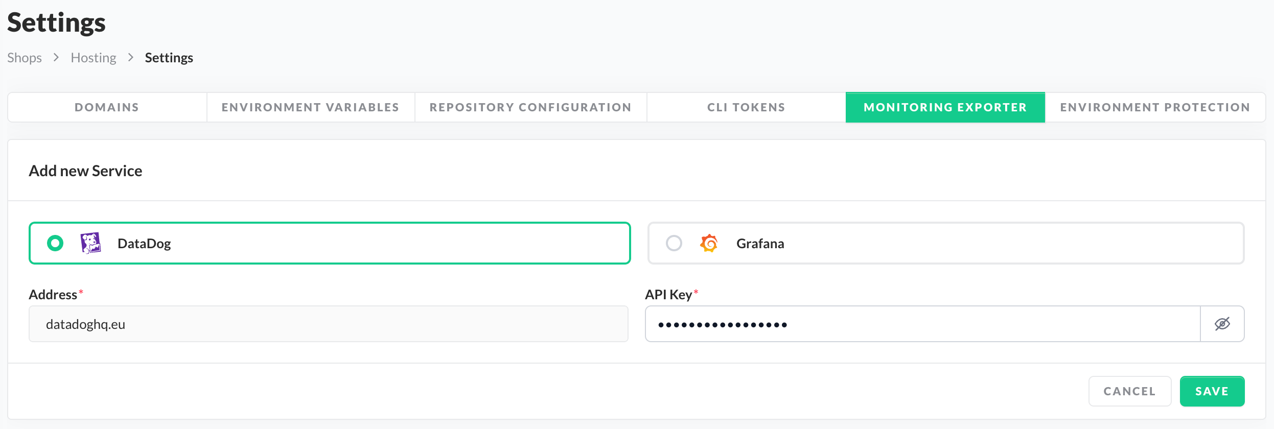 Datadog is the monitoring and analytics platform for cloud applications, unifying metrics, logs, and traces for full-stack observability. To leverage this power, the Storefront Hosting platform makes it easy to export your monitoring data to Datadog, unlocking its full potential. This out-of-the-box integration instantly provides real-time performance monitoring and support through alerting, ensuring you can proactively troubleshoot and maintain a high-performance shopping experience for your business.