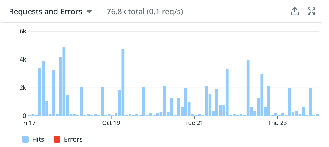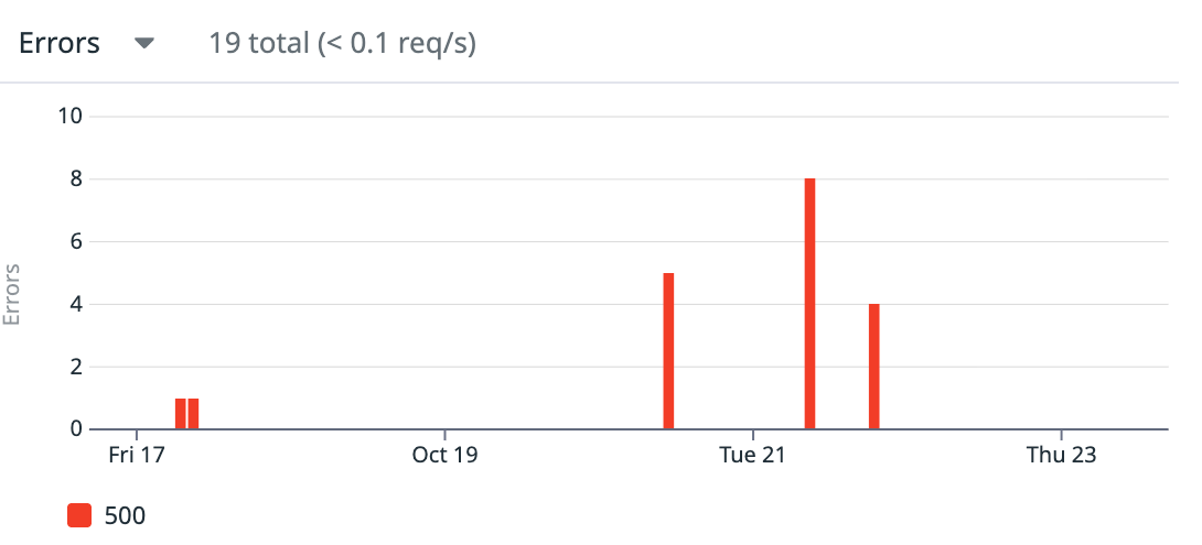 - Errors: Shows the requests that result in errors and indicates potential application failures or certain instabilities.
