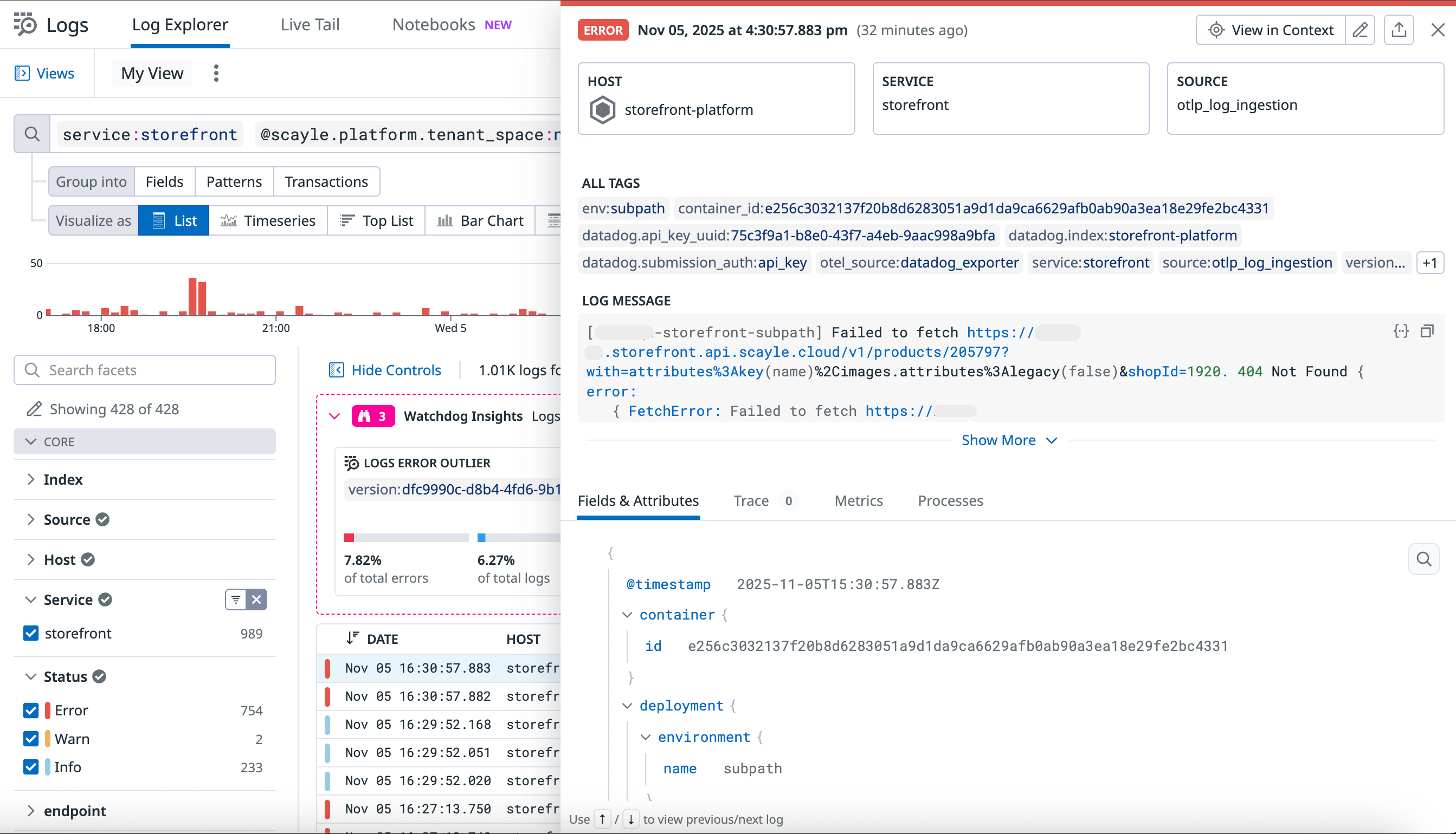 We automatically enrich every Storefront log with standardized metadata, so you can easily filter and find the exact messages you need to troubleshoot.