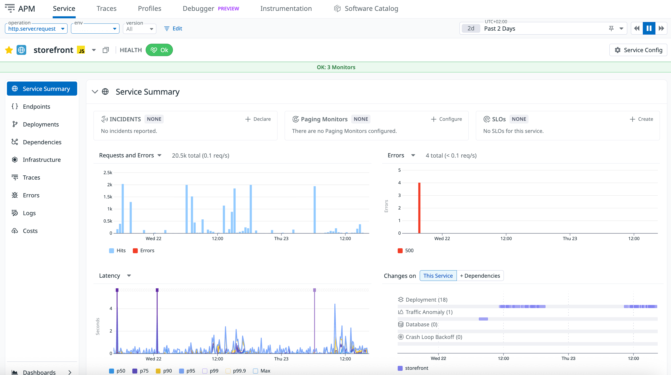 storefront. - Clicking the "Service Page" button will take you to the main APM dashboard for your application.