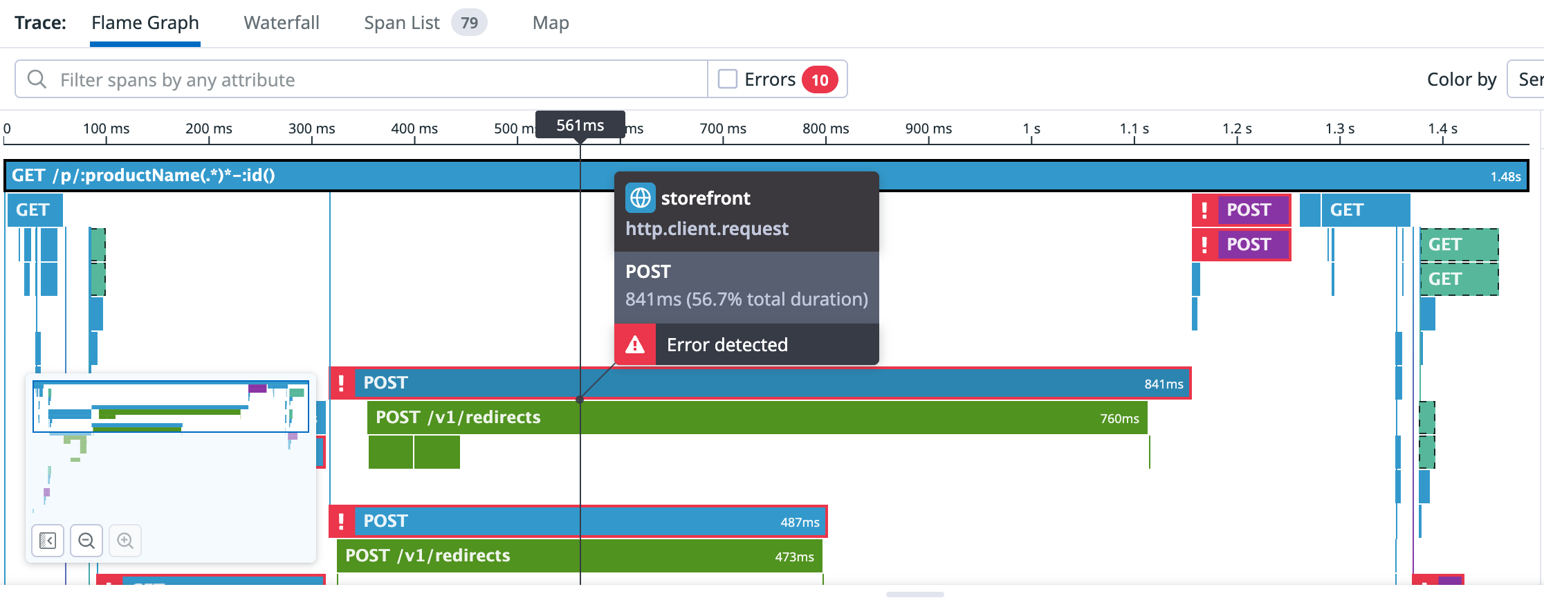 Clicking one of the traces provides detailed insight into the request flow and lets you identify potential issues quickly.