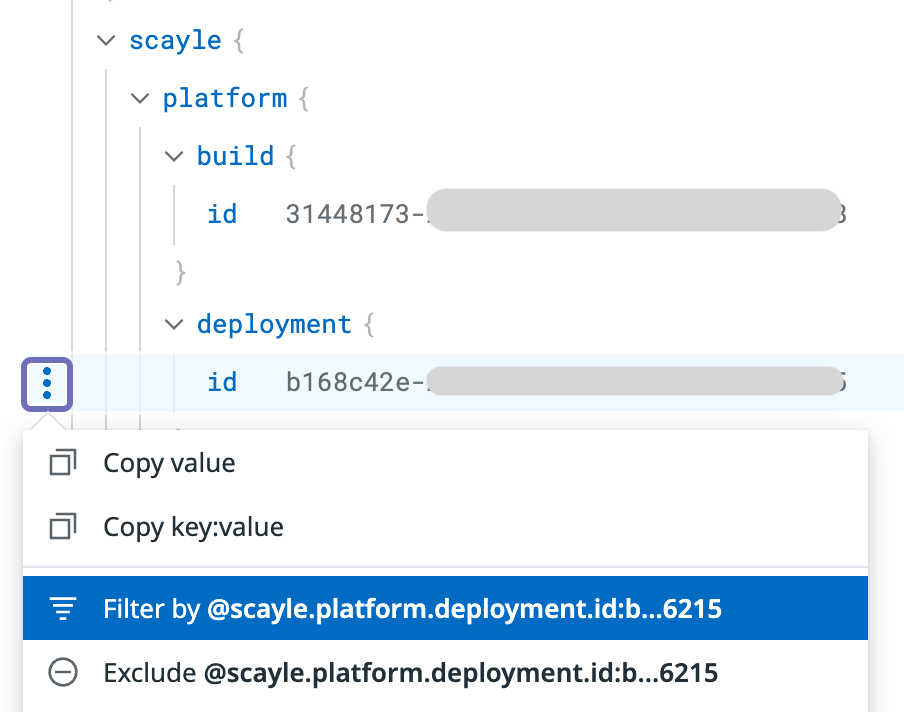 scayle.platform.build.id: The ID for the build of the application code that was running.scayle.platform.deployment.id: The ID for this specific application deployment at a given time.scayle.platform.env.key: The deployment environment where the application was running.scayle.platform.shop.key: The key for a specific shop within the SCAYLE system.scayle.platform.tenant_space: The tenant instance within our platform.